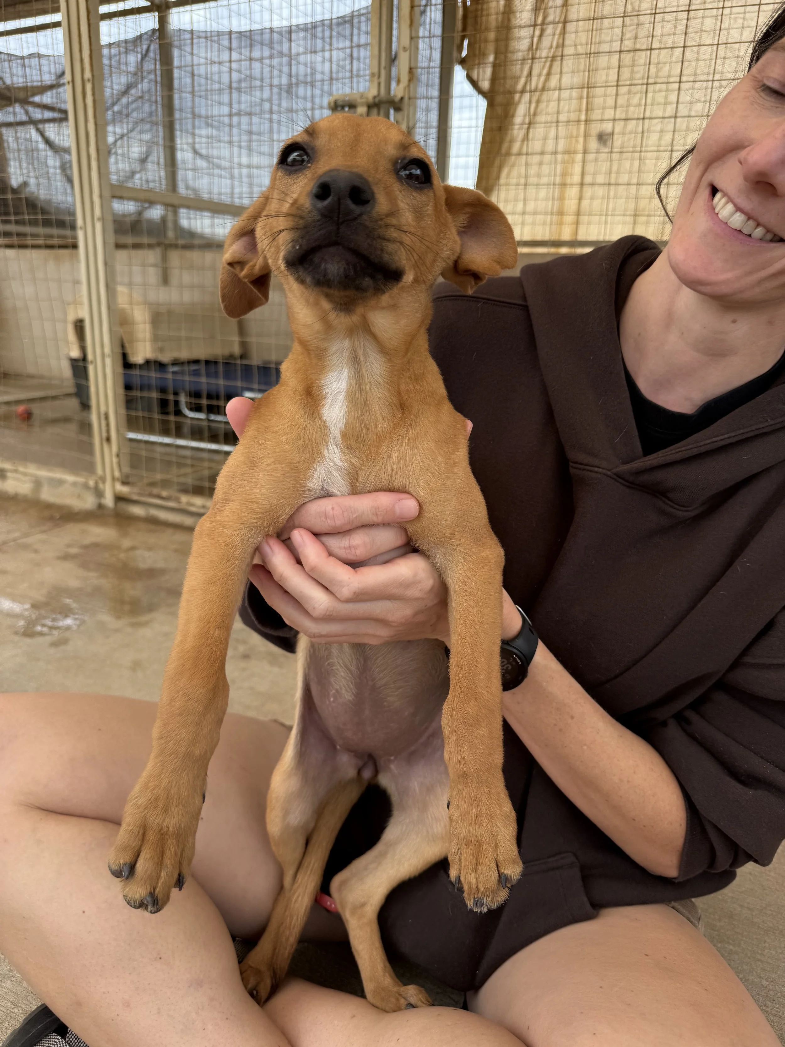 Miel and her siblings were rescued in Cabo. Her mom, Duna, spent most of her life tied up having litter after litter of puppies. Thankfully we were able to rescue this litter along with Mama Duna and end the cycle.